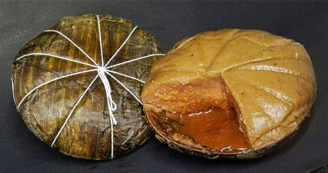 A sweet steamed delicacy of the Waray people. Made from mashed giant taro corms, condensed milk, sugar, coconut milk, and egg yolks. It is placed in half of a coconut shell.